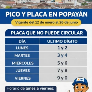 Con el firme propósito de descongestionar las vías arterias y optimizar los tiempos de desplazamiento en la “Ciudad Blanca”, la Administración Municipal dio inicio oficial a la medida de Pico y Placa correspondiente al primer semestre del año 2026.