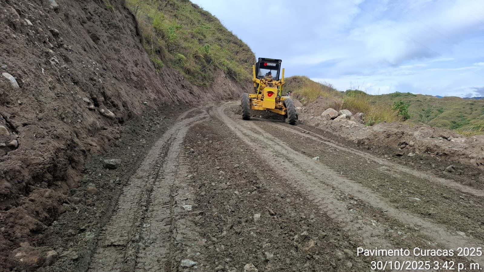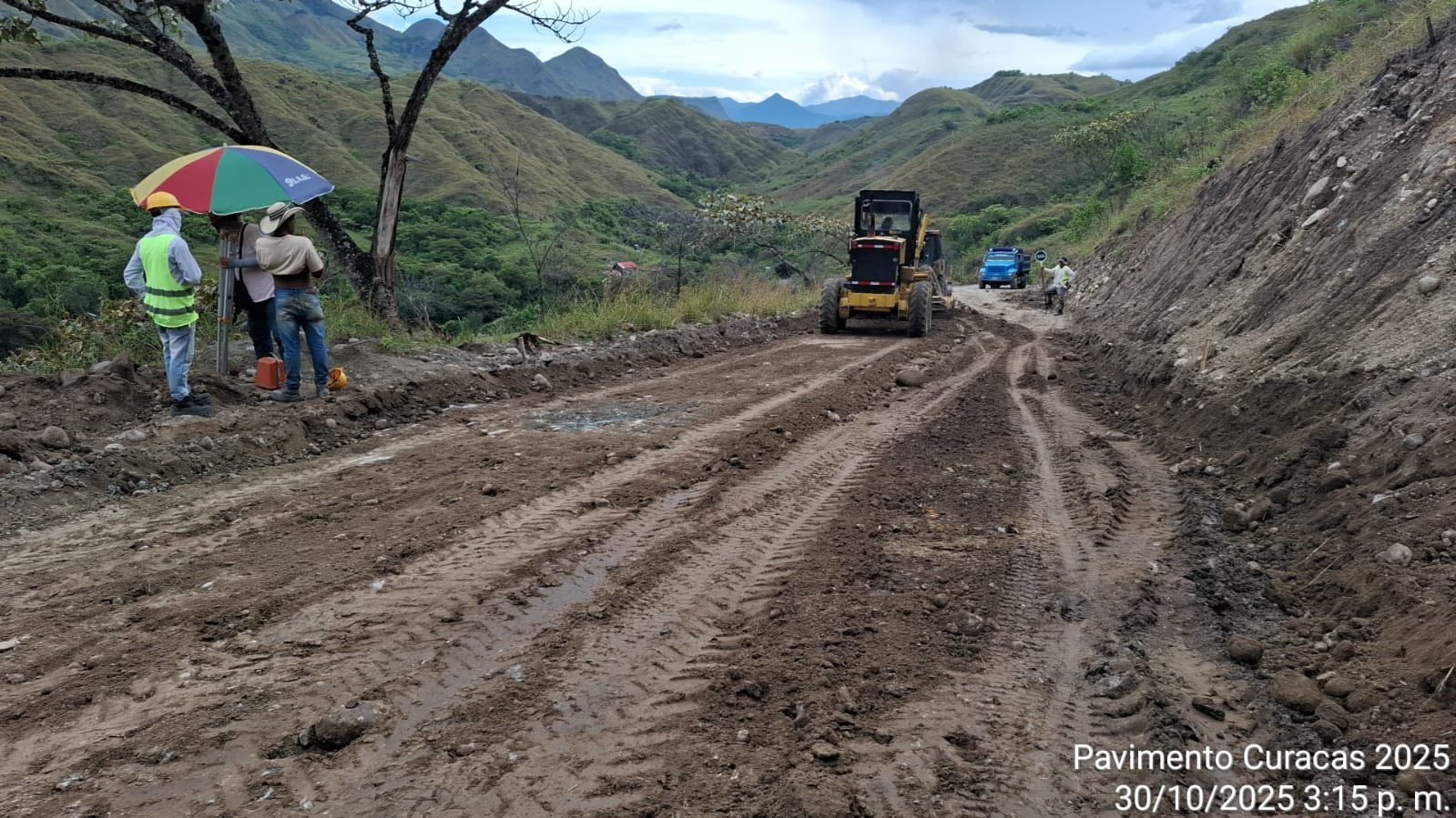 Durante la inspección en Curacas, las autoridades y veedores constataron un avance adecuado y oportuno en las obras. La actividad actual se encuentra en una fase fundamental: la preparación de la base que soportará el futuro pavimento flexible, un componente esencial para la durabilidad y seguridad de la carretera.
